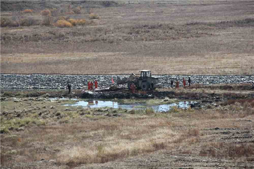 此次演練在尾礦庫模擬環(huán)保事故現(xiàn)場(chǎng)進(jìn)行。當(dāng)班工例行巡檢,發(fā)現(xiàn)尾礦庫壩體發(fā)生滲漏,公司立即啟動(dòng)應(yīng)急預(yù)案,市環(huán)保局領(lǐng)導(dǎo)接報(bào)后,啟動(dòng)突發(fā)事件三級(jí)響應(yīng),應(yīng)急辦各成員領(lǐng)導(dǎo)在多寶山銅業(yè)組成總指揮部,指令環(huán)境監(jiān)察、環(huán)境監(jiān)測(cè)、公安、急救車趕赴現(xiàn)場(chǎng),環(huán)保專家、環(huán)保信息分隊(duì)迅速到總指揮部集結(jié)待命。相關(guān)人員趕赴現(xiàn)場(chǎng)靠前指揮,全面進(jìn)入應(yīng)急搶險(xiǎn)狀態(tài),多寶銅業(yè)20余人攜帶裝備和工程機(jī)械到尾礦庫堵漏,同時(shí)開啟回收泵,對(duì)泥鰍河進(jìn)行圍堵并用石灰進(jìn)行中和處理。環(huán)境監(jiān)察應(yīng)急對(duì)趕到后立即對(duì)事件原因進(jìn)行調(diào)查取證?,F(xiàn)場(chǎng)處置有序進(jìn)行,沒有造成人員傷亡,尾礦庫即將修復(fù),在泥鰍河下流設(shè)置了兩道圍堰,尾礦庫壩體滲透點(diǎn)已經(jīng)封堵完畢,下流泥鰍河水質(zhì)已恢復(fù)正常,終止突發(fā)環(huán)境事件應(yīng)急響應(yīng)。演練結(jié)束后,黑河市環(huán)保局對(duì)演練進(jìn)行了講評(píng)。